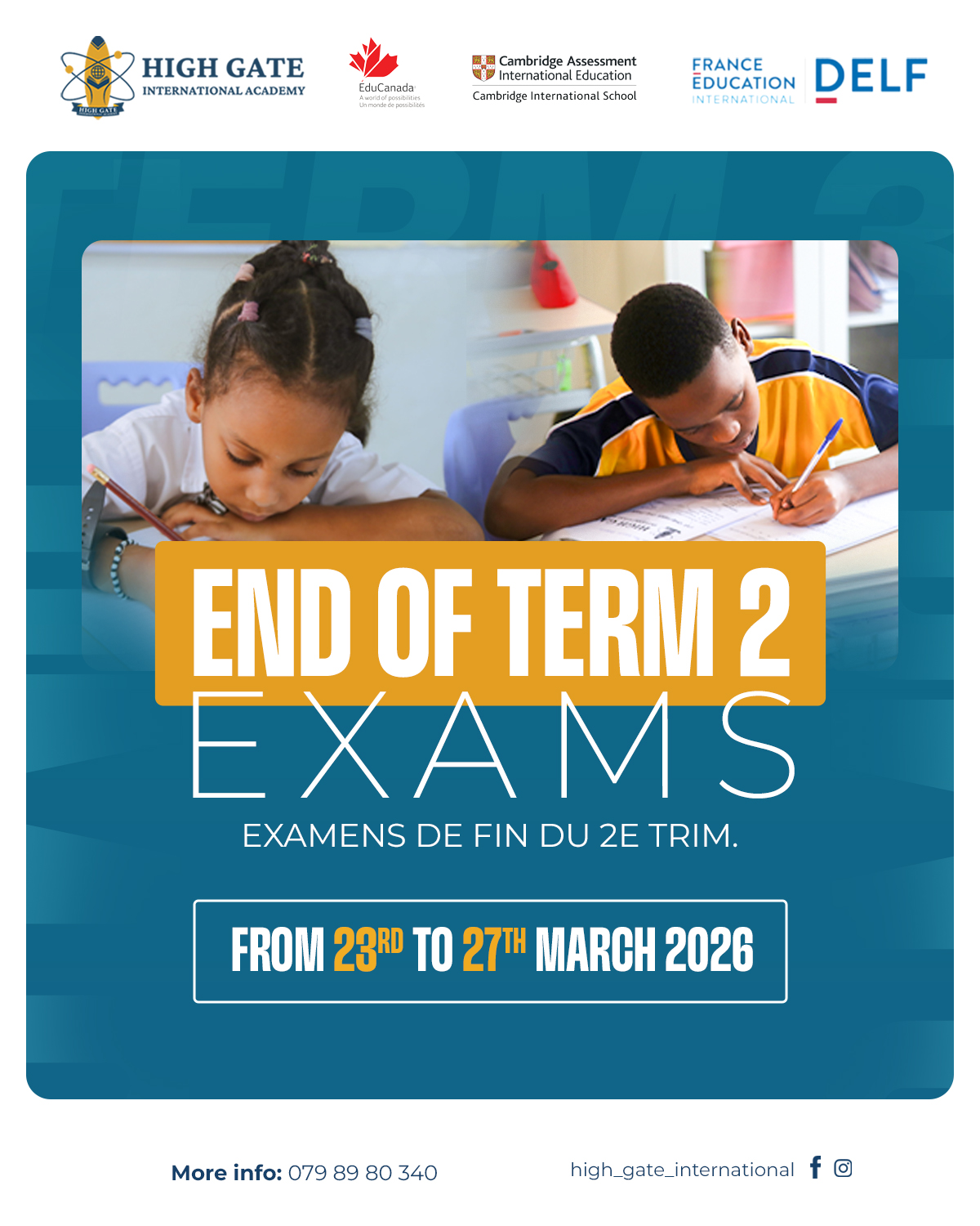 At High Gate International Academy, our academic offerings are built on globally recognized curricula that prepare students for success in an ever-changing world. We integrate the Cambridge Assessment International Education, the Canadian Education System, and DELF (Diplôme d'Études en Langue Française) for French language proficiency — giving our students a competitive edge both locally and internationally.